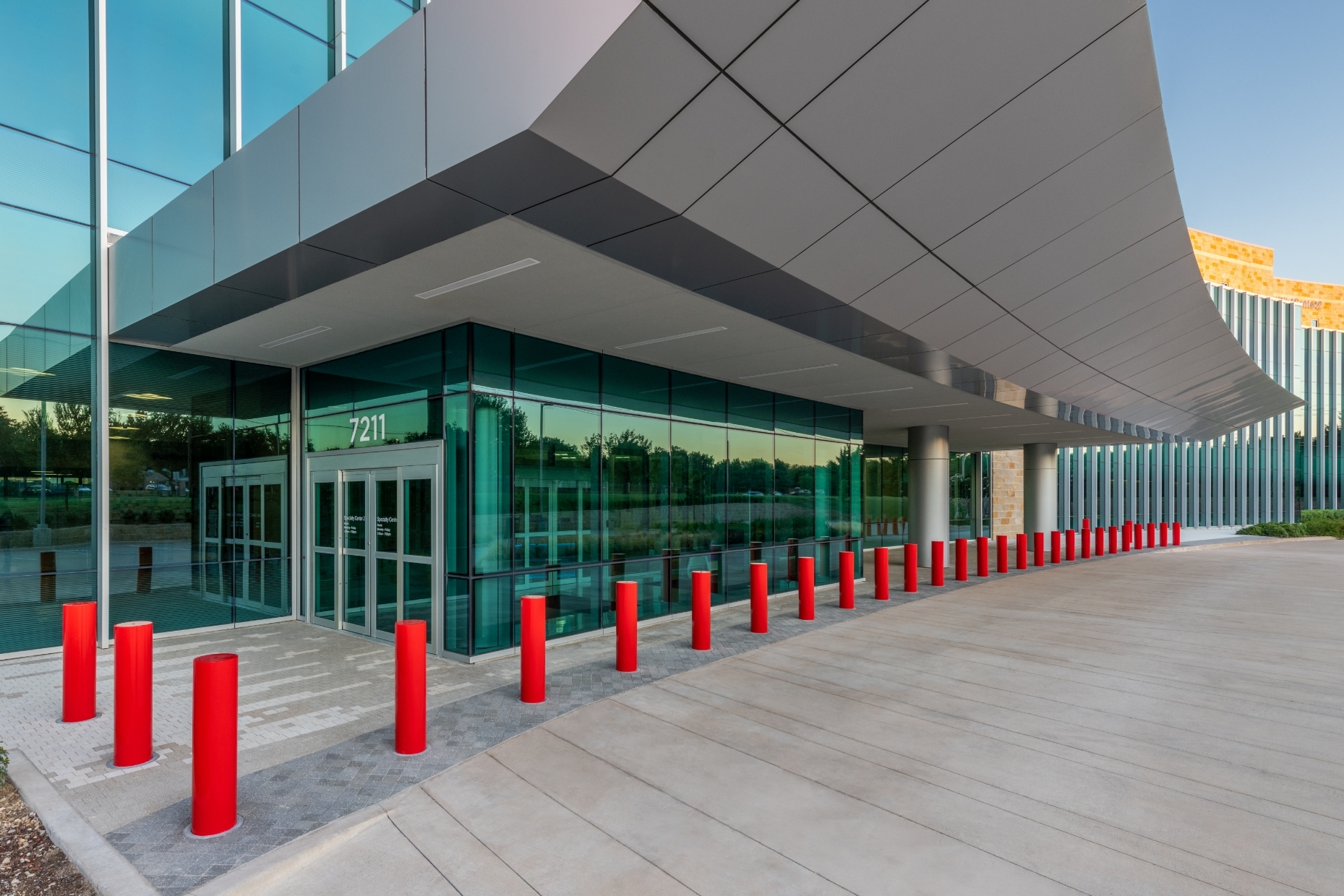 30 MPH (HL2008H S30) entrance protection with the TrafficGuard® patented (U.S. Patent 8,297,873)Helix Locking Removable Bollard System. Crash tested to ASTM F3016 for an impact of a 5,000 lb. vehicle at up to 30 MPH.