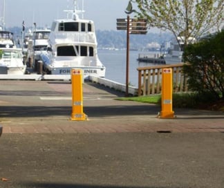 Boats, docks and other property can be given additional security with traffic control posts. Collapsible bollards can be locked and unlocked easily with personally selected padlocks to keep unwanted vehicles out of private pathways that lead to docking locations. This can also prevent vehicles from drifting or driving off the dock into the water. Bollards are visual deterrents that remain inconspicuous to the casual observer, never detracting from the appealing marina scenery. Reflective tape also allows for visibility at night.