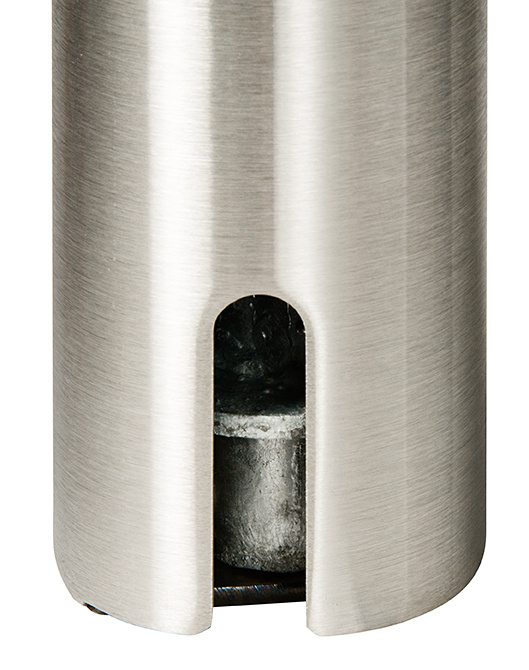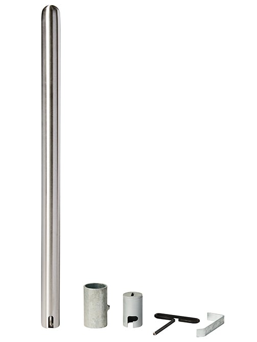 - This removable stainless steel bollard is 36″ tall with a 2.375″ OD, 13 lb. weight