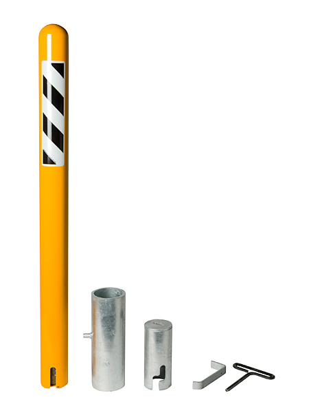 - Standard finish, TGIC polyester outdoor finish RAL1028 yellow locking removable bollard