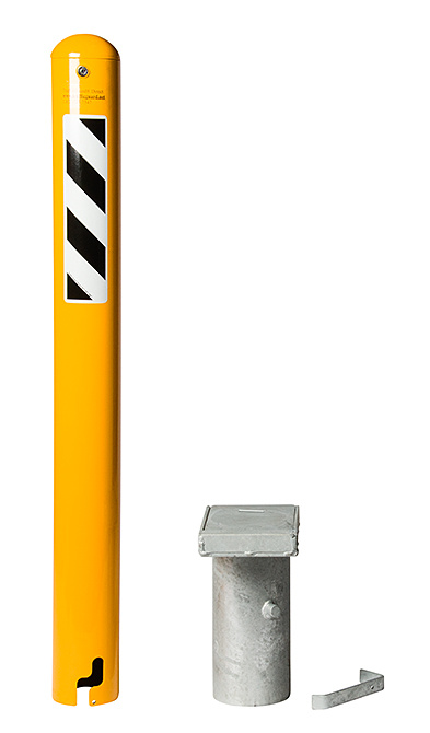 These security barriers are some of the best traffic control posts you can buy. Their heavy duty metal construction and secure internal locking system guarantees they are durable and sturdy, but are also easily removable for emergency vehicles or in the case that they are only used for particular occasions. These metal parking barrier posts come in varying levels of security, and each includes our unique internal deadbolt locking system. As with many of our products, when the removable bollard is not in place the hardware is flush with the ground, creating a traffic control system that is completely unobtrusive when not in use. Our round security barriers also work as removable driveway posts to restrict access in both residential and commercial areas. Order your metal bollards today. This removable galvanized bollard with lock and key is also available in stainless steel. 36 inch Round Post Key Lock removable bollard models. The Round Post Key Lock RP 3503/RP 3503F has a 30 pound bollard post weight with a 3.5 inch OD and a .216 wall thickness. The Round Post Key Lock RP 3504 has a 40 pound bollard post weight with a 4.5 inch OD and a .237 inch wall thickness. The Round Post Key Lock RP 3506 is the heaviest with a 70 pound bollard post weight and a 6.625 inch OD and .280 inch wall thickness.
