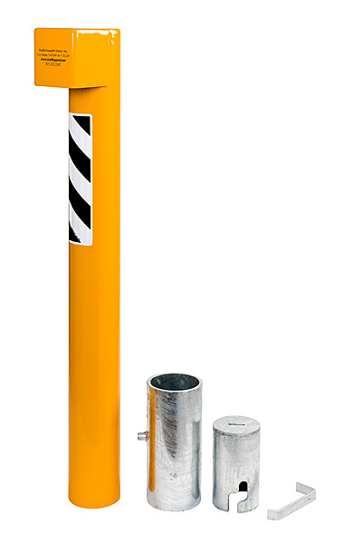 - Welded in place padlock cover protects the lock from tampering, creating a high security bollard.