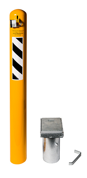 Primarily used to protect parking spaces, these lightweight removable bollard posts are easy to remove for authorized access and are perfect to prevent unauthorized access. If a lightweight barrier is all you need, this 10 pound post is easily removable. Even though they’re lightweight, these movable bollards are also very durable, and are also very affordable, so you don’t need to over pay to protect your parking spot. When removed, the movable bollard can be replaced with a galvanized ground sleeve filler that is flush with the ground, making it completely unobtrusive when removed. Also, these lightweight removable bollard posts come in custom colors, so you can choose whether you want something that stands out for safety or something that matches the other hardware in the parking lot. With a top-locking design utilizing patent pending internal deadbolt technology, our round post lightweight barriers’ locking mechanism is safe from the elements on the ground, including snow pileup, ice, and more. If you have any questions about our round post top-lock barrier or other safety and traffic regulation products, contact us at 877-727-7347 or sales@trafficguard.net. The new Round Post Top Locking bollards both have a 36 inch bollard post height. The Round Post Top Lock TL 1001 has a 1.875 inch OD and a 10 pound bollard post weight. The Round Post Top Lock TL 1002 is heavier with a 13 pound bollard post weight and a 2.375 inch OD. The Round Post Top Lock TL 1003 is heavier still with a 30 pound bollard post weight and a 3.5 inch OD.