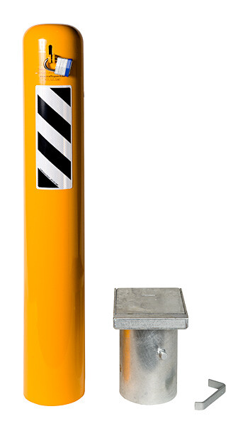 Primarily used to protect parking spaces, this heavy duty parking post is perfect to prevent unauthorized access. These movable bollards are very durable and are also very affordable, so you don’t need to over pay to protect your parking spot. When removed, the movable bollard can be replaced with a galvanized ground sleeve filler that is flush with the ground, making it completely unobtrusive when removed. Also, this steel road barrier comes in custom colors, so you can choose whether you want something that stands out for safety or something that matches the other hardware in the parking lot. With a top-locking design utilizing patent pending internal deadbolt technology, our round post lightweight barriers’ locking mechanism is safe from the elements on the ground, including snow pileup, ice, and more. If you have any questions about our round post top-lock barrier or other safety and traffic regulation products, contact us at 877-727-7347 or sales@trafficguard.net. The new Round Post Top Locking bollards both have a 36 inch bollard post height. The Round Post Top Lock TL 1001 has a 1.875 inch OD and a 10 pound bollard post weight. The Round Post Top Lock TL 1002 is heavier with a 13 pound bollard post weight and a 2.375 inch OD. The Round Post Top Lock TL 1003 is heavier still with a 30 pound bollard post weight and a 3.5 inch OD.