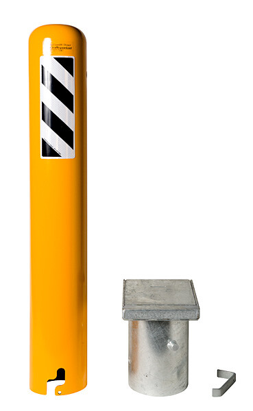TrafficGuard, IncTwist-In Vehicle Barrier System for Easy Traffic Control TrafficGuard, Inc provides twist-in posts ranging from lightweight and easily transportable 30 lbs. to durable 70 lb. varieties. Whether you need a traffic bollard for only special occasions and need it to be easily transportable or will leave it in place a majority of the time and want a sturdy product, we have a twist-in variety for you. This heavy-duty removable bollard can let emergency vehicles pass through or be utilized only on certain occasions for extra traffic control. The twist-in design makes it simple to install and remove the traffic bollard depending on your needs, and they are durable, high quality products when in place. Quickly install and remove the steel bollards and leave behind a flush mount when bollard is not in use. 36 inch Round Post Twist-In bollard models. The Round Post Twist-In RPT 3501F/RPT 3501 has a 30 pound bollard post weight with a 3.5 inch OD and a .216 inch pipe. The Round Post Twist-In RPT 4501 has a 40 pound bollard post weight with a 4.5 inch OD and a .237 inch pipe. The Round Post Twist-In RPT 6601 is the heaviest with a 70 pound bollard post weight and has a 6.625 inch OD and a .280 inch wall.